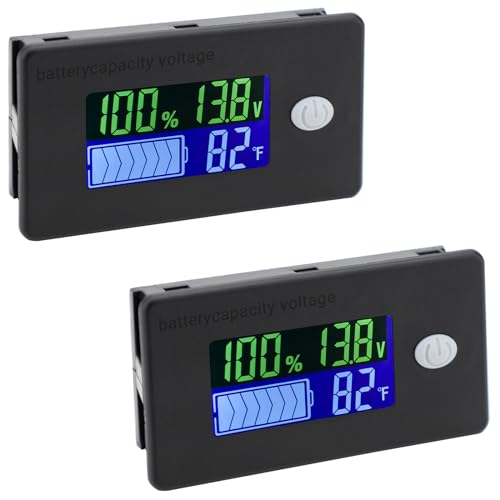 DROK 12V Golf Cart Battery Meter 2pcs, LCD Display 10-100V (12V/24V/36V/48V/60V/72V) Battery Capacity Tester Volt Meter Fahrenheit Temp Gauge for RV Car Solar System